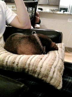 I mean, how could I resist? Look at how cute she looks curled up on a pillow, sitting on Brian's lap. How could you not love her?